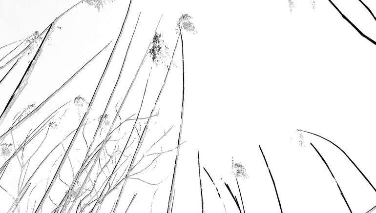 Voyage de mon regard au travers de grandes herbes folles par le vent traitement en noir et blanc , coté japonisant tirage sur papier argentique baryté 108gr