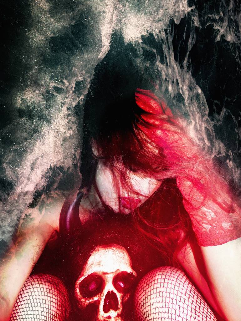 In my work I'm exploring themes like identity, sex, gender, feminism issues, as well as myths, religion, mythological and psychological archetypes, psychology, various emotional and mental states, and subconscious in general, mixing socially and politically more relevant issues with intimate narratives, self-analysis and introspection. I always draw from the principle of dark feminity, celebrating and channeling dangerous and seductive goddesses of night, magic, chaos metamorphosis and otherworldly realms, female demons and nocturnal, oceanic or subterranean mythological creatures, together with film noir (anti)heroines, which are all also present in my poetry. The most visible and tangible element in my work is eternal obsession with sex, death, fetishes and taboos. I am traveling to those dark and disturbing realms of human psyche and experience, challenging fantasies and borders of identities and experiences. In that investigation, I am diving into the oceans of Id to emerge with hybrid creatures that represent different facets of myself and I am trying to tame the demons inside, that omnipresent shadow that constructs the dark, unsettling and eerie part of everyone's self. And doing so, i prefer bold, dramatic and more raw expression. But, when I deal with drawing medium, I engage in different styles, according to my momentary feeling: from intricate and detailed work that borders with visual stream of consciousness and hermetism, to clear, distinct, illustrative, descriptive and explicit stuff. Thematically, women and female creatures are the most present actors in my work, representing martyrs, queens, explorers, otherworldly entities, victims and conquerors of their fate and specific life journey. I am obsessed with possibilities of transformation and reinvention of self and with polarity between male and female principle and energy, which sometimes leads to representations of sadomasochism, and sometimes to merging of opposites in spiritual androginy, but those sexual, gender and social identities always dance on the edge of established normatives. So, I'm fascinated with dramatic contradictions of psyche, and I examine the tango of Eros and Thanatos, as well the relation of vulnerability vs. brutality, ethereal vs. carnal, angelic vs. diabolic. Little monsterish caprices and impulses are driving force of my work, creating macabre scenes with elements of uncanny.