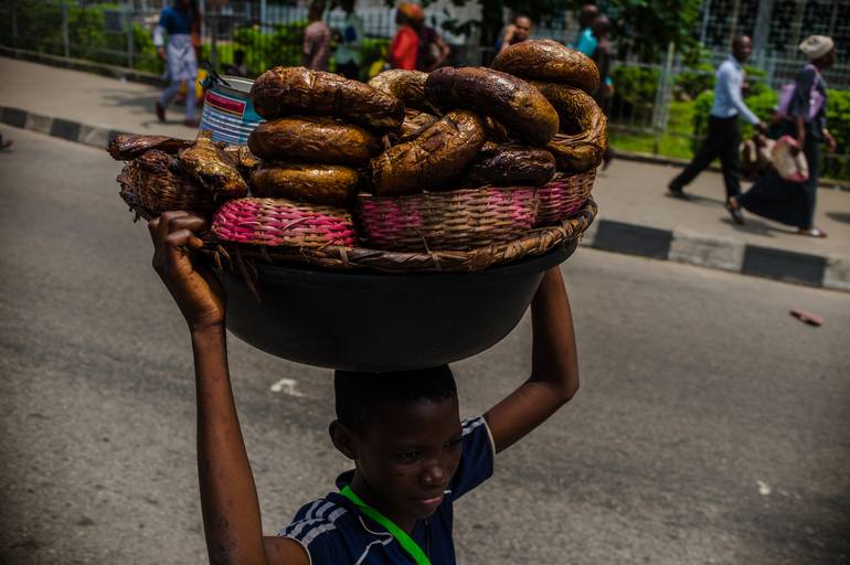 inspired by the daily hustle of the poor in Nigeria, This is the livelihood of most Nigerian children, They help their parent by selling food stuff on the streets. This is a boy of about 12 years old is helping his parent raise money for his school fees by selling fish. I want most viewers to see h...