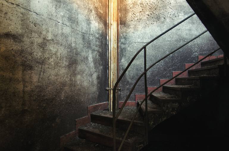 Taken in an abandoned distillery near Ferrara, Italy Part of Menace Ruine collection Digital print on paper installed on a black forex panel