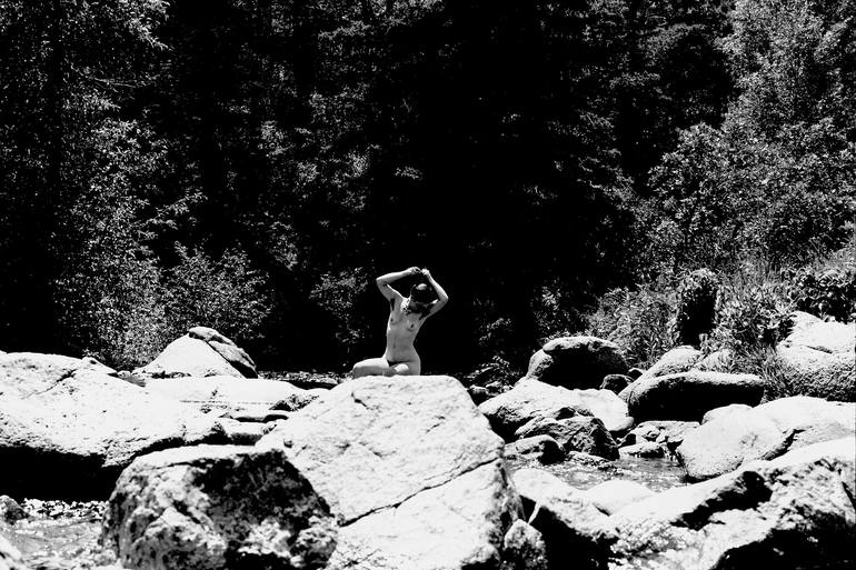 BLACK & WHITE LANDSCAPE OF SUNBATHER IN THE ROCKY MOUNTAINS NEAR A SULFUR SPRING.THIS WAS AN UNSTAGED SNAPSHOT