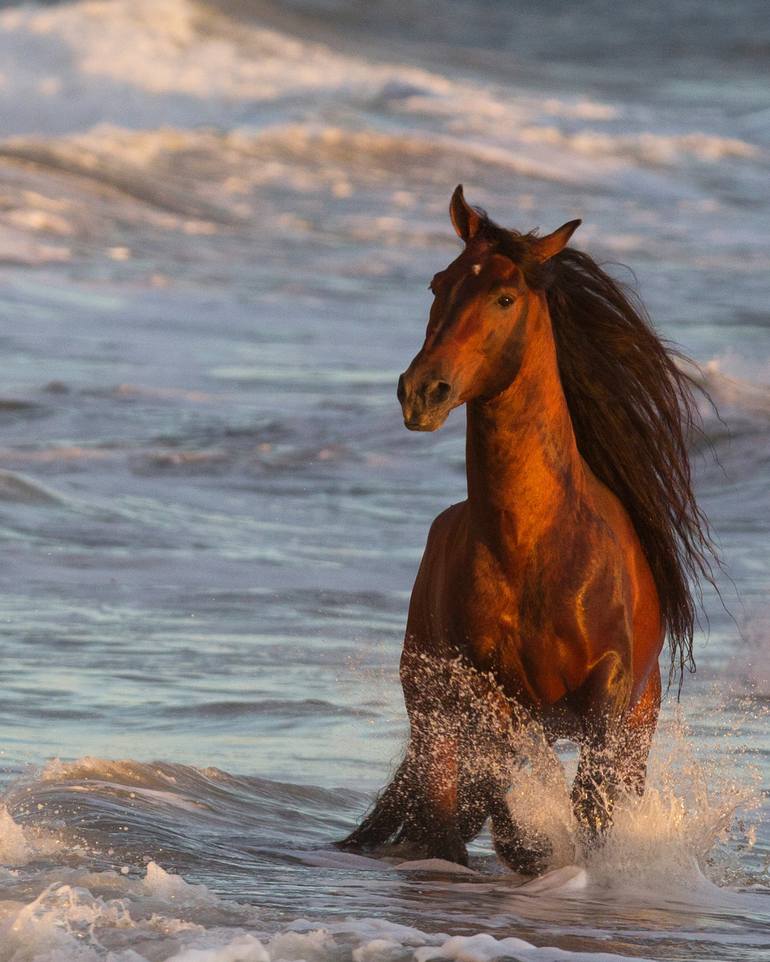 This iconic white horse image is part of award-winning photographer and author Carol J. Walker's "Art of the Andalusians" collection featuring the most beautiful horses in the world, Andalusians, one of the oldest breeds of horses which originated in Spain. Here a stnning bay Andalusian stallion hea...