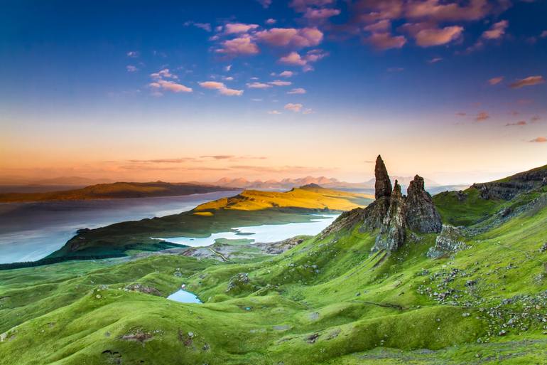 Experience the raw beauty of Scotland with this captivating color photo of the Old Man of Storr, a natural wonder on the Isle of Skye. This stunning landscape, a testament to photorealism, captures the dramatic highlands and famous mountain views of this iconic European location. The artwork is prin...