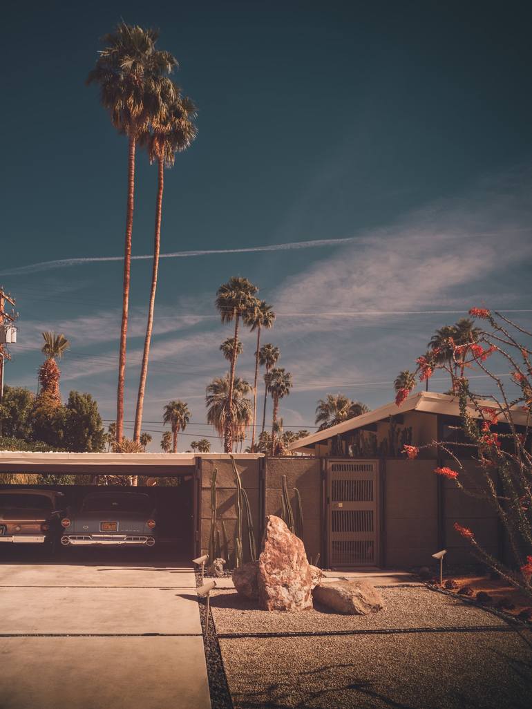 A 1960 Dodge Polara parked in a mid-century modern home car port in Palm Springs, California.