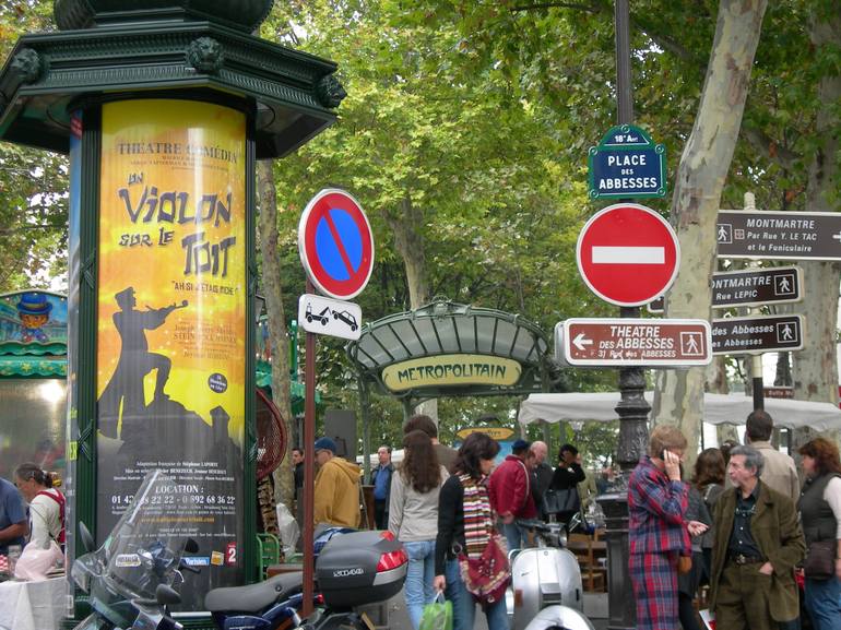 A digital photograph of a market at Abbesses, Montmartre, Paris.