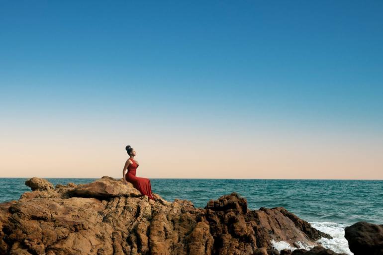 The view of the sea from the side of the rocks was breathtaking, so adding a feel of a girl gave it a blooming