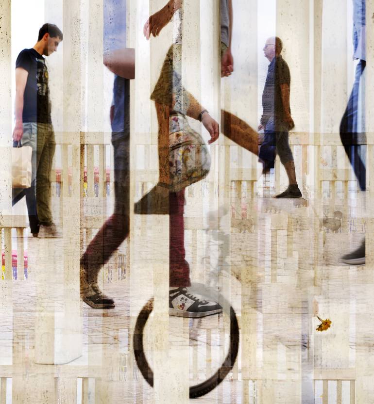 I was born in Naples (Italy) and now I live in Rome the city that I set off from and the city I go back to. I’m involved in photography since the late seventies years gradually supporting the need for deeper search for a language to identify with. My point of view is influenced by my painterly vision of a place, which I transform into a photograph. This interpretation derives from my personal study of the modern tradition of the abstract-figurative “-isms” typical of the early twentieth-century avant-garde movements in the arts. Geometry is certainly an important aspect of my research. "Forms and trace elements are repeated with an attention to mathematics and music.The composition is arranged in a pattern that produces harmony and refers to a symphonic score of lights and figures interspersed with fragments of stories surprised from analytical look and similar to choreographies". (S.Petronici) I have exhibited in several galleries in Rome, Milan, Venice, Florence, Lecce, Naples, Amsterdam, Paris, London, New York, Philadelphia, Berlin and Dubai. The artwork Travellers # 1 is present in the collections of the Philadelphia University of the Arts and of the France Public Library.