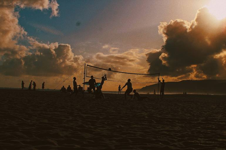This image depicts a group of young South Africans playing Volleyball in the middle of a warm sunset. With the sun beaming through the clouds giving a golden glow of the sunset in the peacefull december holidays of 2022. All artworks are made-to-order, printed on Museum Quality Archival Paper, Fibr...