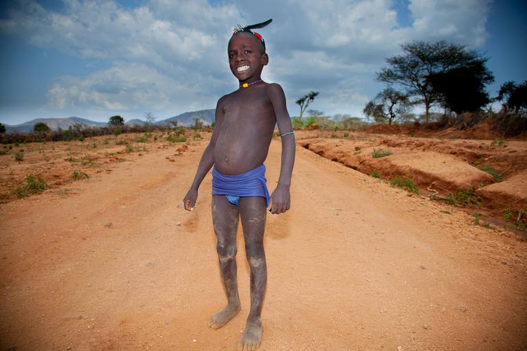 Portrait of Hamar tribe boy smiling. Omg Valley, Ethiopia.
