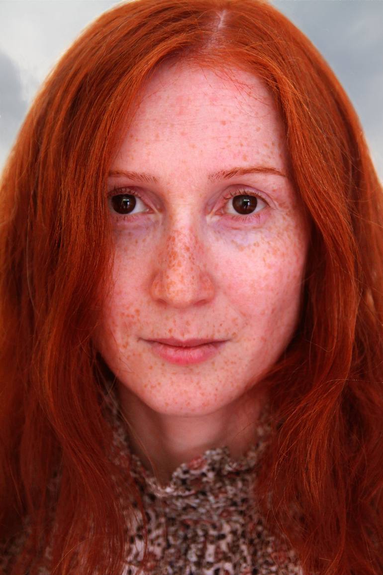 Portrait of Lady Sevda with shining Venetian Blonde hair and designer blouse.
