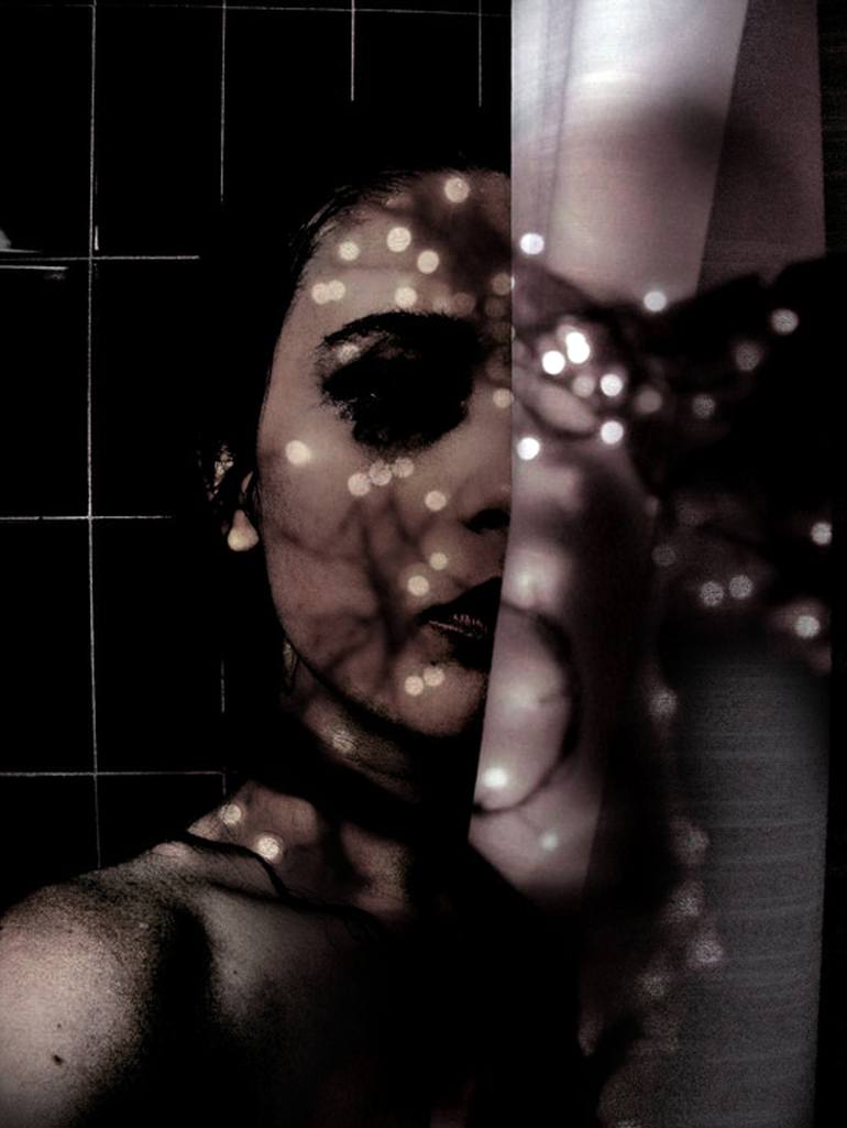 Digital print, self-portrait under the shower, image of inner turmoil, melancholia and isolation.