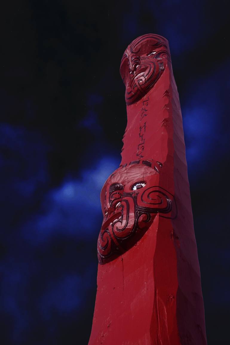 A photo of maori pouwhenua in Ngaruawahia, a culturaly significant town in New Zealand and home of the Maori king. This photo was taken in the evening against a night sky with a long exposure time giving the image a more dramatic feel and look. The limited edition print comes in a run of 50 with e...