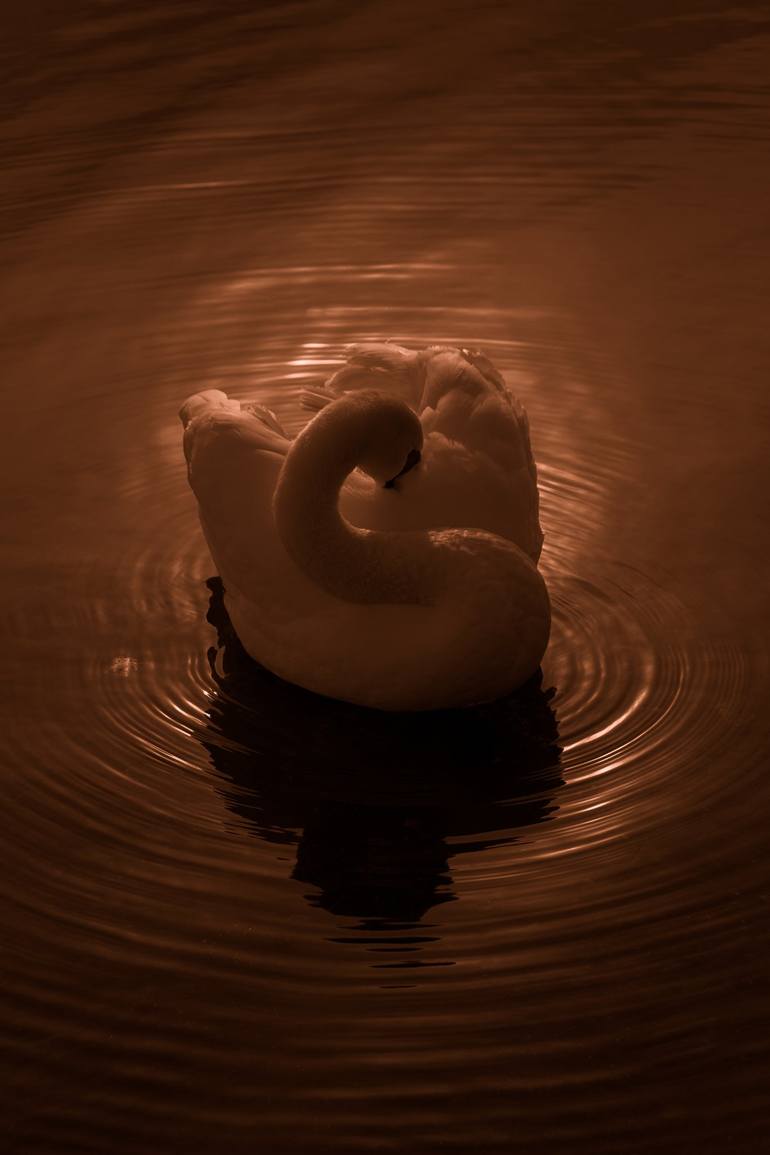 Preen - the grace of wildlife coupled to perfection with the elements as a swan preens before a setting sun reflected in the ripples of the upper lake at The Waterworks, Belfast, Northern Ireland. Location: Newtownabbey, Northern Ireland CERTIFICATE OF AUTHENTICITY signed by the artist supplied as...