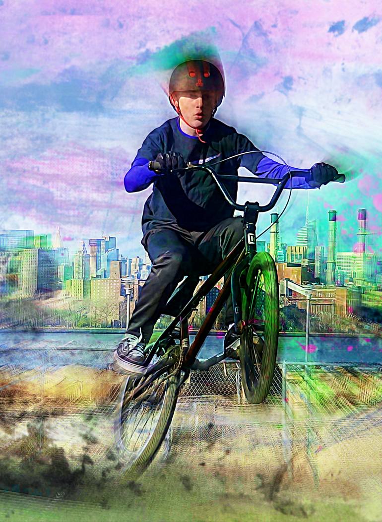 An abstract image of a young pump track warrior on a local Brooklyn Track in Williamsburg. Limited Edition Prints: 2 / 10