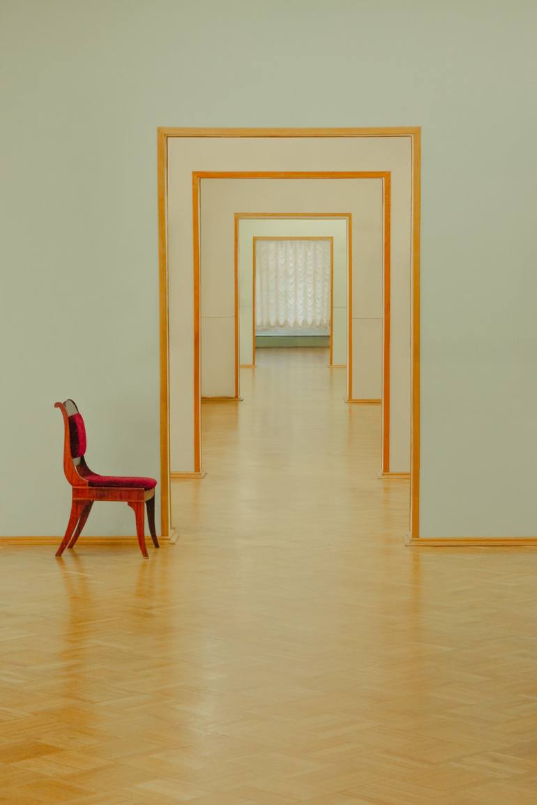 This vibrant Fine-Art Print, "Red Chair," adds a touch of minimalistic charm to any space. The geometric composition and retro color palette evoke a sense of vintage sophistication, while the clean lines and plain background offer a calming, uncluttered aesthetic. Printed on Innova Soft White Cotto...
