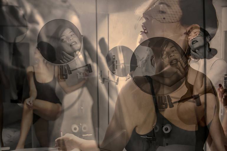 This exclusive IUBA image,"Ritual of Nightfall" created in the Italian Riviera, is a striking collage of layered reflections, blending the preparation rituals of a woman with dreamlike, and classic cinematic aesthetics. Our central figure, adorned in elegance and confidence, appears through a seri...