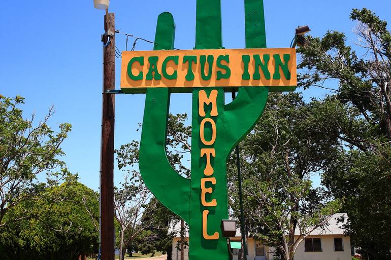 Unique neon sign at the Cactus Inn Motel in McLean, Texas. Route 66 is still there, for those who choose to find it.