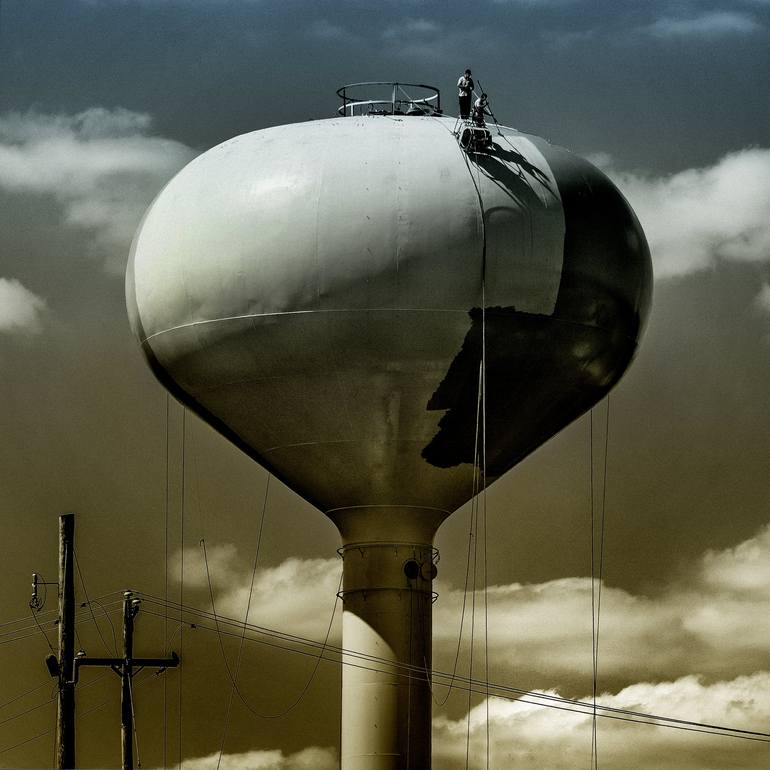 People working on a water tower in New Hope, Pennsylvania, Bucks County.