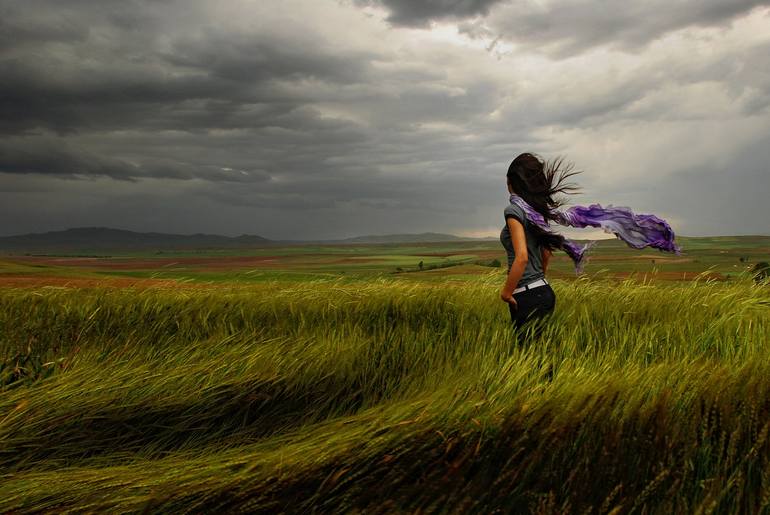 Field of wheat and women and wind Limited edition, signed and numbered, printed on archival quality fine art paper Photo Hahnemühle.