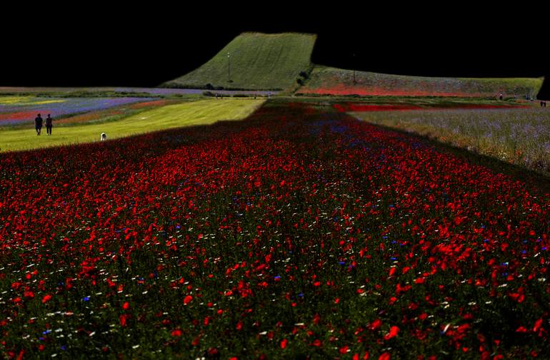 A view of landscape taken in Umbria, Italy, during the flowering period.