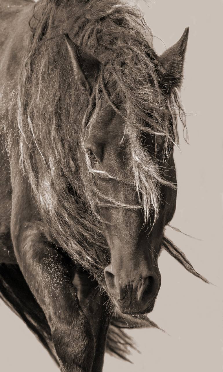This compelling image of a wild Sable Island stallion who is walking across the dunes with the wind in his long mane is part of award-winning photographer and author Carol J. Walker's "Sable Island Wild Horses" collection featuring the wild horses of Sable Island. This storm-tossed wild and remote i...