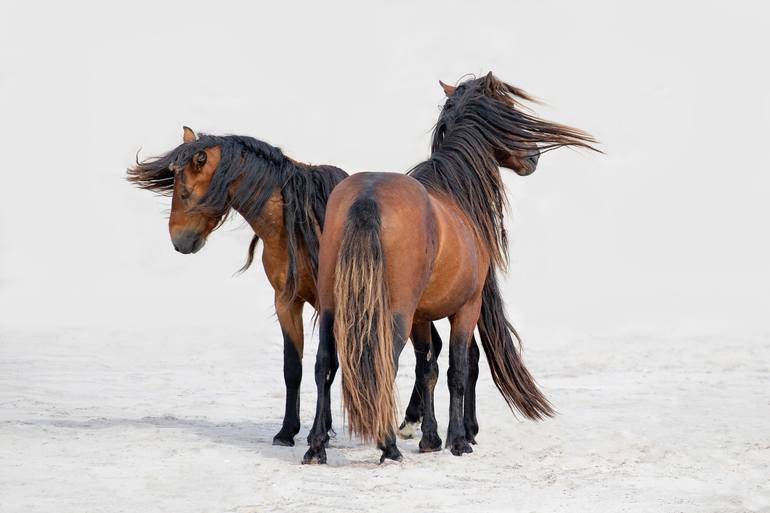 This compelling image of two wild Sable Island stallions who are friends and look like they are dancing together is part of award-winning photographer and author Carol J. Walker's "Sable Island Wild Horses" collection featuring the wild horses of Sable Island. This storm-tossed wild and remote islan...