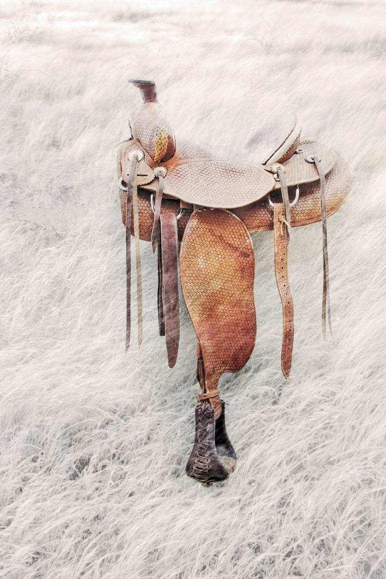 A beautiful custom horse saddle floating the wild grasslands of borderland Arizona, planet Earth! This hand-made saddle was crafted by a ranch girl living a few feet from the Arizona-Mexico border. The remaining grasslands in a few borderland valleys are very much prairie country, an unexpected deli...