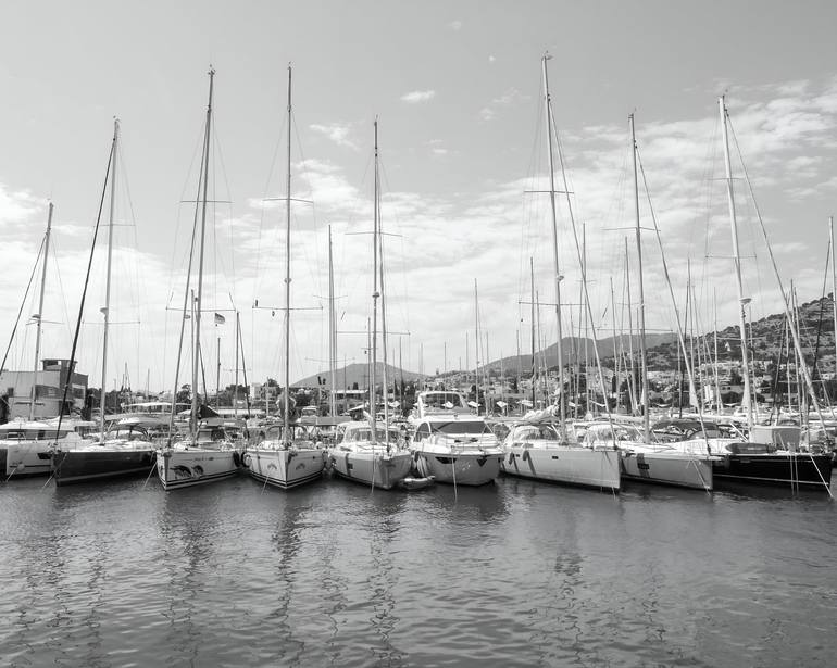 Inspiration: The inspiration for this work could stem from the beauty of coastal life and the calm, orderly rhythm of a marina. The subject matter of sailboats and yachts speaks to a connection with the sea, adventure, and freedom, all common themes in classic maritime photography. The timeless aest...