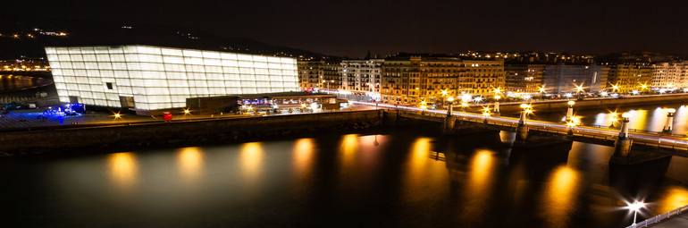 Kursaal conference centre at night view from my window Donostia San Sebstian Basque Country Northern Spain Europe - panoramic print
