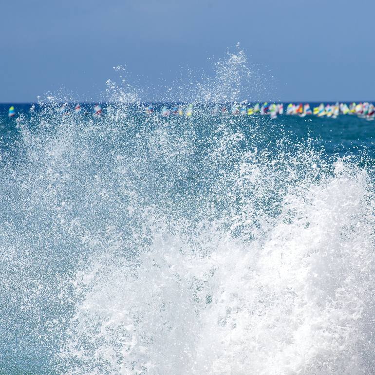 Signed & numbered with Certificate of Authenticity. Direct photography without computer manipulations. A photograph of a shattering wave in the foreground, against a sea background.