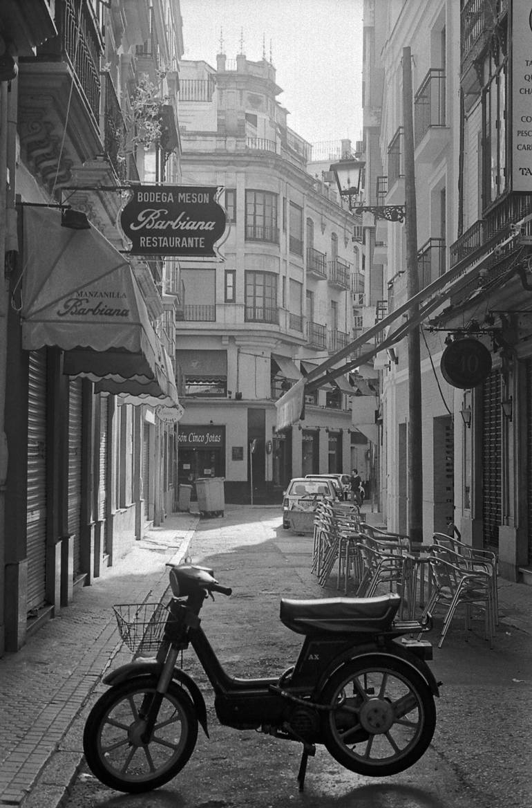 This image was taken on Christmas day 1998. I was visiting on my own and was eager for the city to resume its pulse. But being Europe on holidays and Christmas day, the vibe was timid, alongside parked a Vespa in the middle of the street. The city of Seville is famous worldwide for its culture, mon...