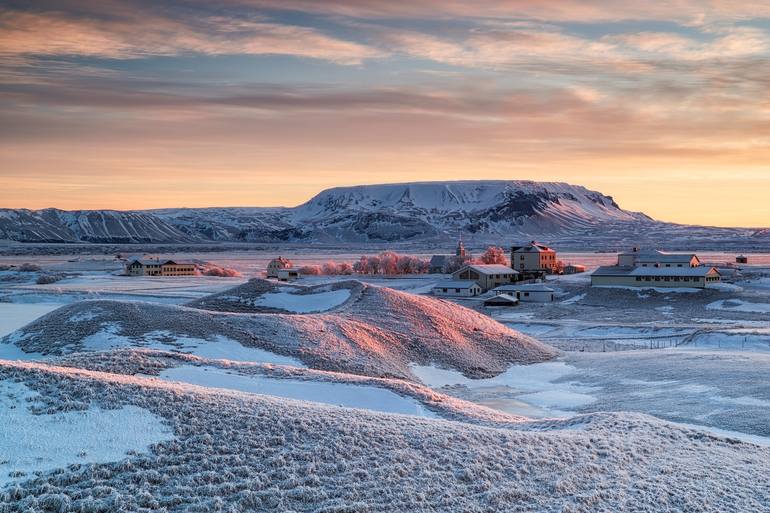 Skútustaðir village in Mývatn lake at sunset, Iceland Print
