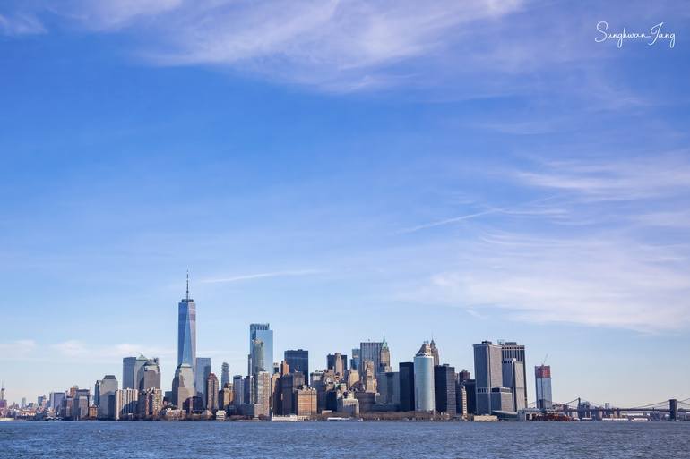 (New York, USA) The city's outline looks like it's singing in the sky. The famous tall buildings in New York stand tall against the light blue sky. This calm picture shows how the city is always busy but can still be peaceful in the morning. It makes you stop and think for a moment in the middle ...