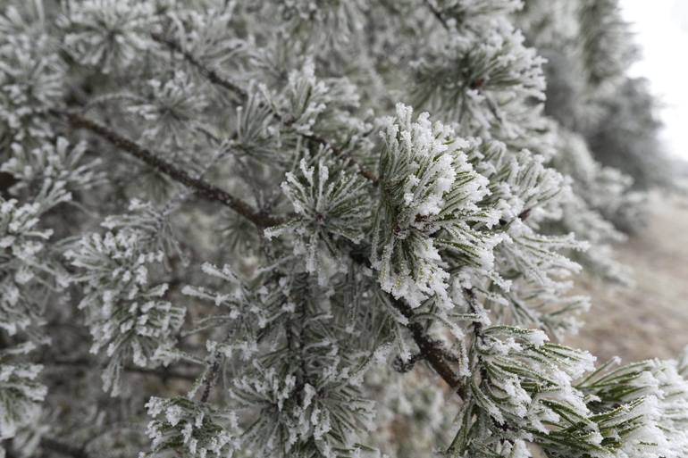 A light cover of snow adorn a forest of pine tree during winter in Tennessee.