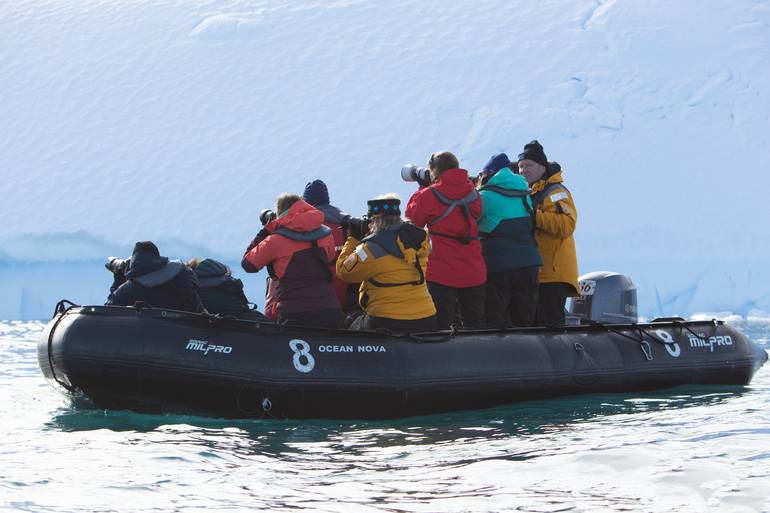 I thought you might enjoy getting a glimpse of what it's like to make photos from a zodiac. This photo captures some of my fellow travelers at work nearby.