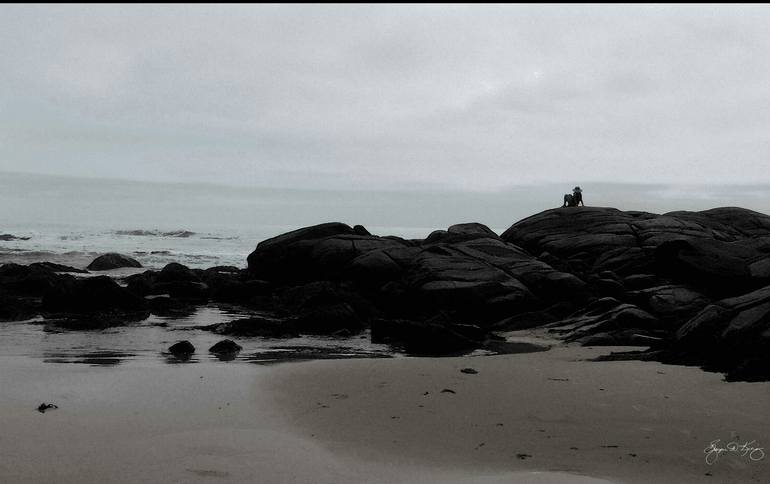 On an overcast day along the Atlantic Ocean a woman sits alone on the rocks known as Goose Rocks in the Maine town of York.Edition of 5.