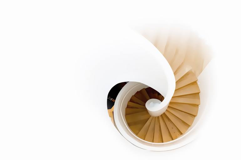 Spiral staircase in white background. Geometry spiral