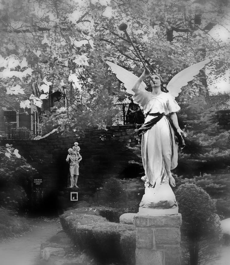 This image of an angel is a statue that is on the grounds of St. Lucy's Church grotto in Bronx, NY. These statues and the grotto existed from my childhood growing up in the Bronx.