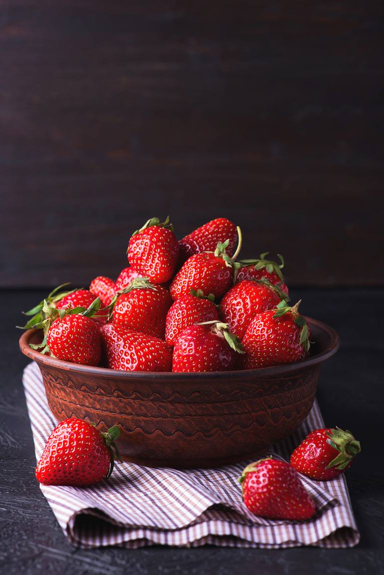 This is a photo of strawberry in the bowl. You may use the print of it in your kitchen or restaurant.