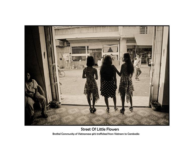 Three Vietnamese girls who work in a brothel community in Svay Pak, 11 kilometers from the capital of Phnom Penh, stand at the entrance of the shophouse where they work. Customers, both local and foreigners, will walk through the community until they decide where to stop and enter the brothel. Vari...