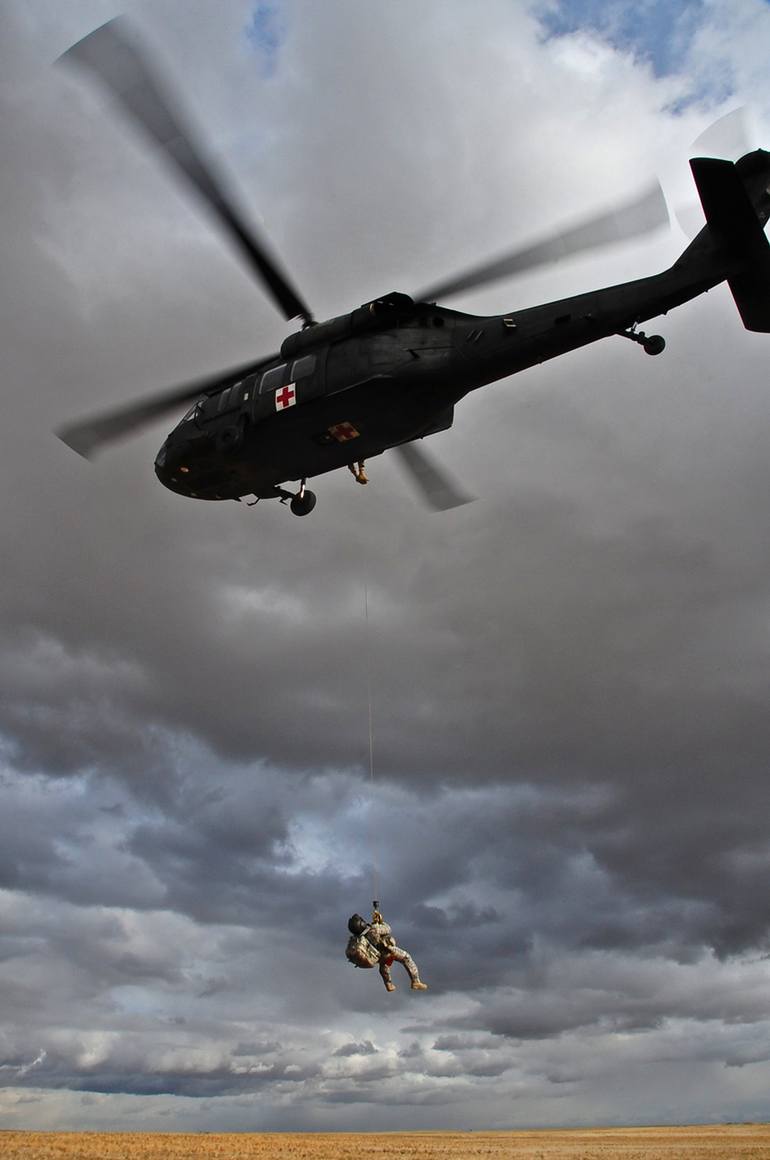 "Suspended Between Worlds" is an award-winning photography by Liesl Marelli Army Medic suspended from a UH 60 (Medic) Black Hawk helicopter.
