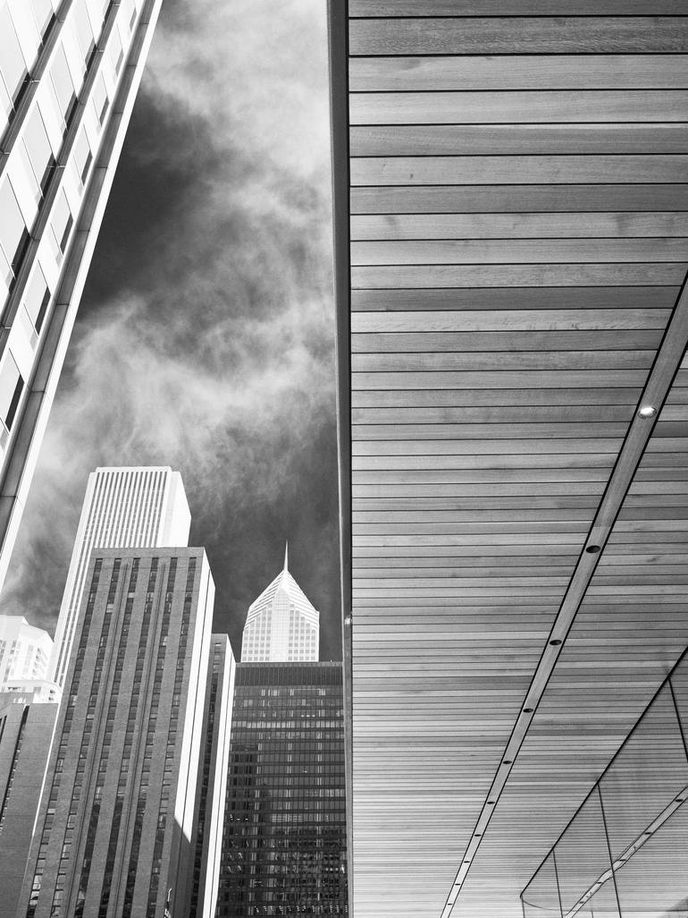 The Apple Store Chicago with its cutting edge MacBook inspired roof, glass walls and amazing city views captured by photographer William Dey. Special Architectural Creations Art Exhibition and Fundraiser Brewster Gallery Chicago, Illinois. Every design feature minimizes the boundaries between the in...