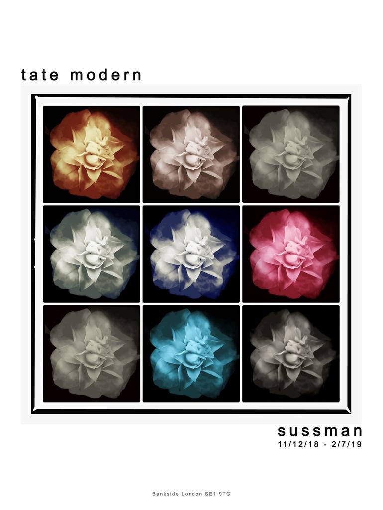 Understated, yet striking, at the same time. Postmodern art reinforces the idea that truth is relative. For example, nine versions of the flower, not one. Either all of them are "true," or none of them are. The work is a homage to Irving Penn.