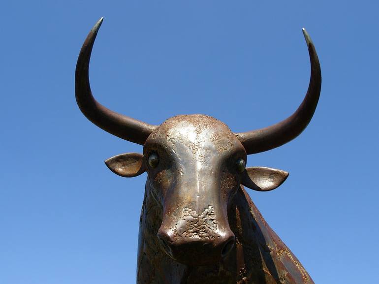 Color print of digital photograph. Detail of the sculpture "Bull" by artist Sergio Castillo. Matte paper.