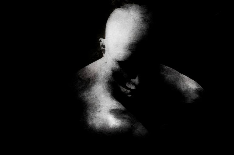 An abstract image of a solitary man staring into the abyss before him is haunting and mysterious.