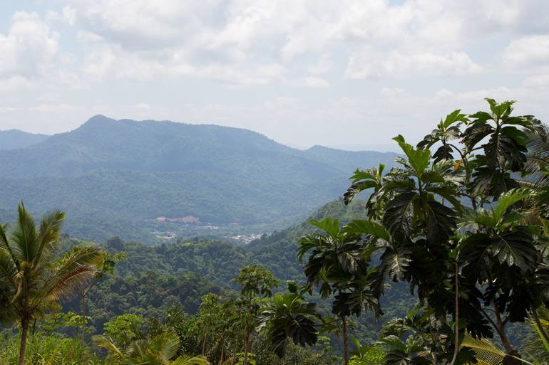 The artist loves breadfruit and eats it often when it is in season. She enjoys cooking and finds this popular food to be very versatile in creating meals. This beautiful breadfruit tree that overlooks the hills of Paramin in Trinidad and Tobago is a classical landscape shot. It show the tropical bea...
