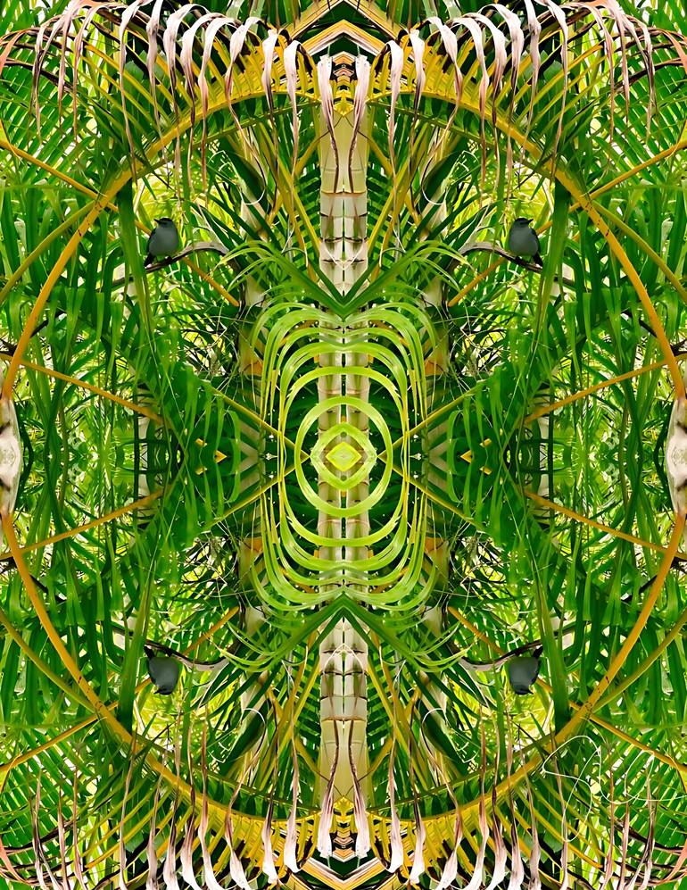 A gray catbird, photographed in South Florida — and mirrored to create a circle. The overall vision or point of this piece is that here on Earth we’re in one of the cosmic or universal catbird seats, on a planet of miraculous design & abundance.
