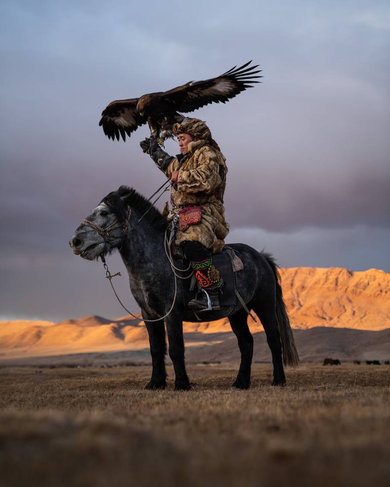 This work is part of the "Mongolia" collection. The Eagle Hunters are nomadic families living in the remote Ulgii region in western Mongolia. During the summer months, they search for the freshest pasture to feed their livestock, while in the winter time, when the skin of their pray is the thicke...