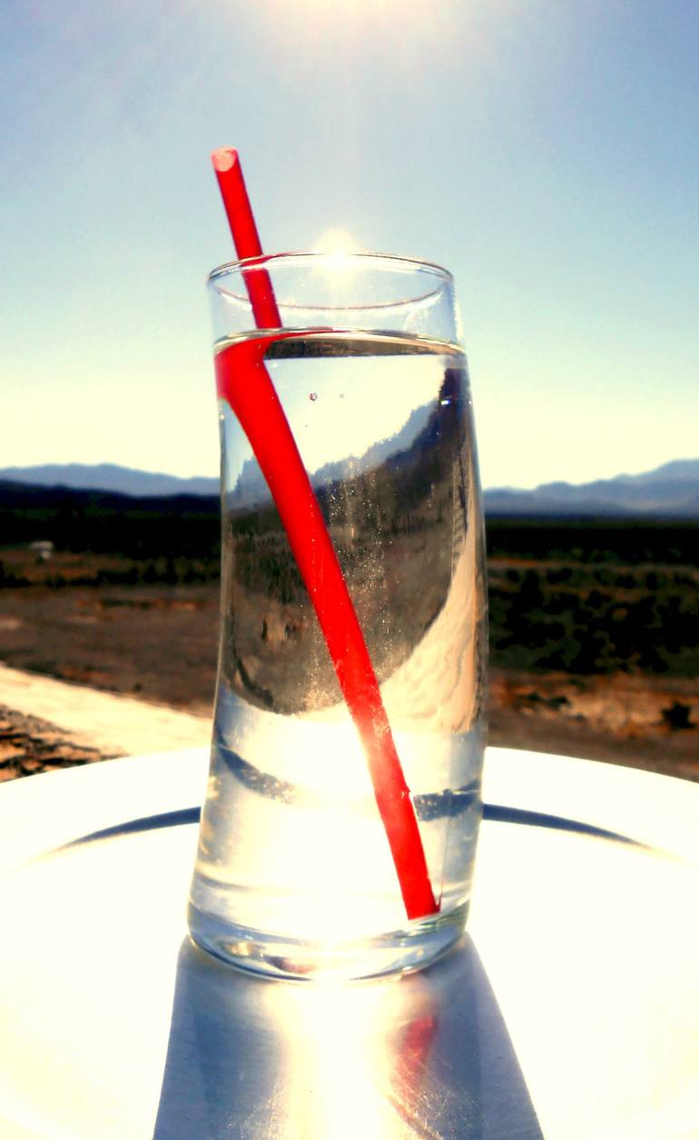 The red straw in a glass of purified water, ... the desert heat, ... refreshing to say the least. Art photograph by Dietmar Scherf (2013). Original (only 1 Original in existence in the world), signed, numbered (as 1/1), titled and dated by Artist Dietmar Scherf with Certificate of Authenticity. Make...