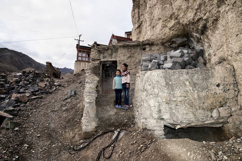 The little sisters we met at Lamayuru. It is their home in the village. They study in Leh and stay in hostel. Every summer vacation they come to their village home to stay with their family and grand mother. This was one such vacation